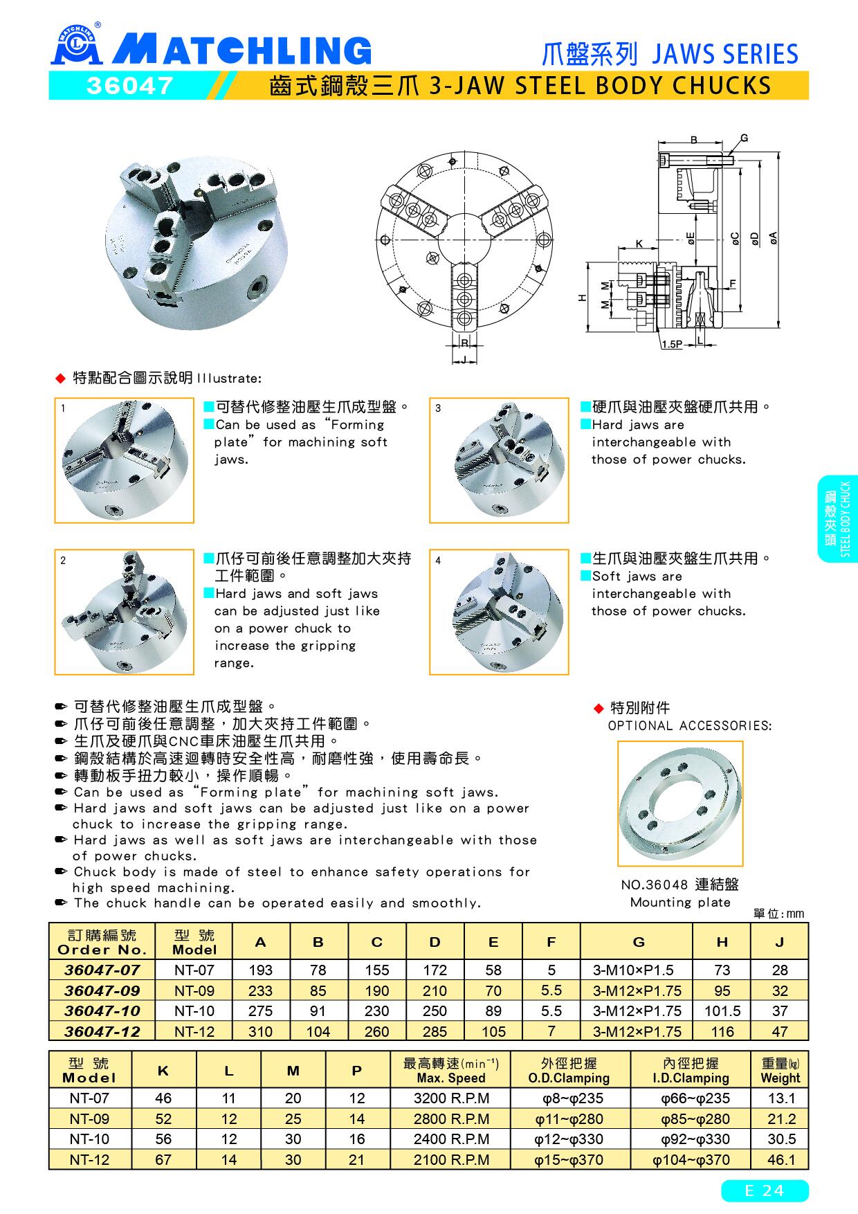 | NT-12 | 67 | 14 | 30 | 21 | 2100 R.P.M | φ15~φ370 | φ104~φ370 | 46.1 | |||||||||