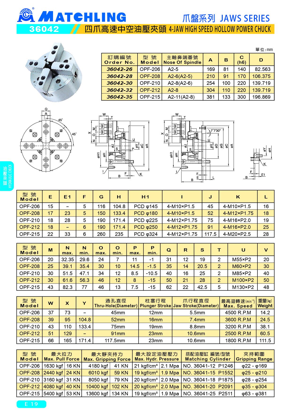 | OPF-206 | 1630 kgf | 16 KN | 4180 kgf | 41 KN | 21 kgf/cm2 | 2.1 Mpa | NO. 36041-12 P1246 | φ22 -φ169 | |