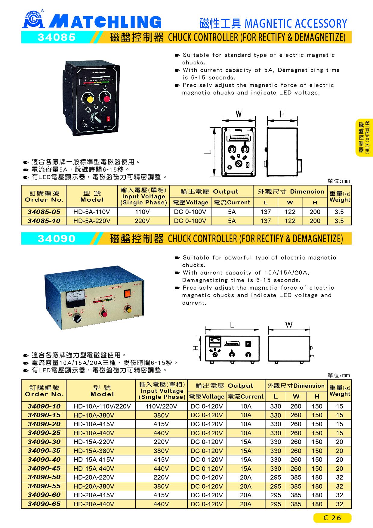 ● With current capacity of 10A/15A/20A, Demagnetizing time is 6-15 seconds.