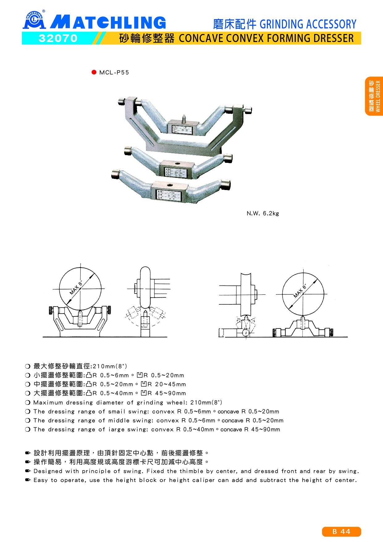 ● The dressing range of iarge swing:convex R 0.5~40mm。concave R 45~90mm
