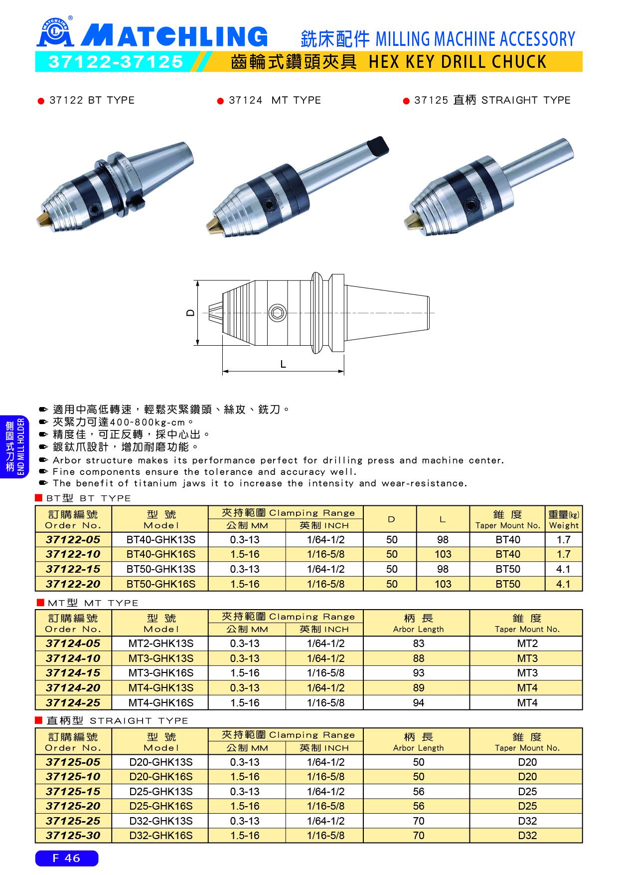 37122-37125 HEX KEY DRILL CHUCK - MATCHLING