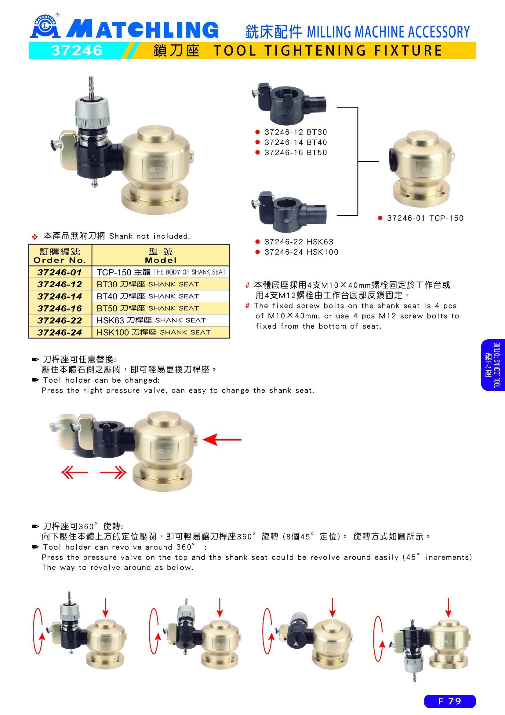 - Tool holder can revolve around 360° : Press the pressure valve on the top and the shank seat could be revolve around easily (45°increments)