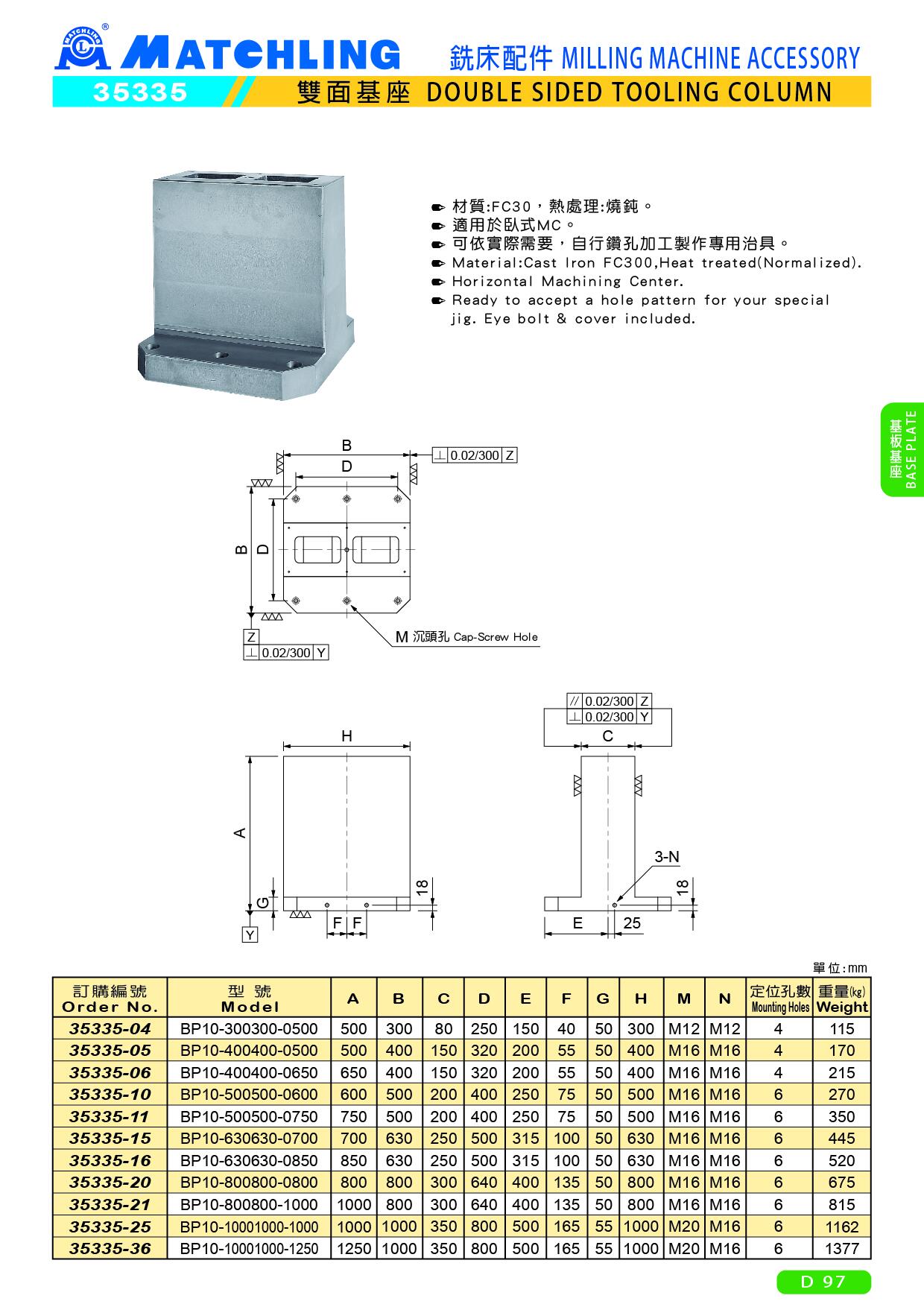 | 35335-04 | BP10-300300-0500 | 500 | 300 | 80 | 250 | 150 | 40 | 50 | 300 | M12 | M12 | 4 | 115 |