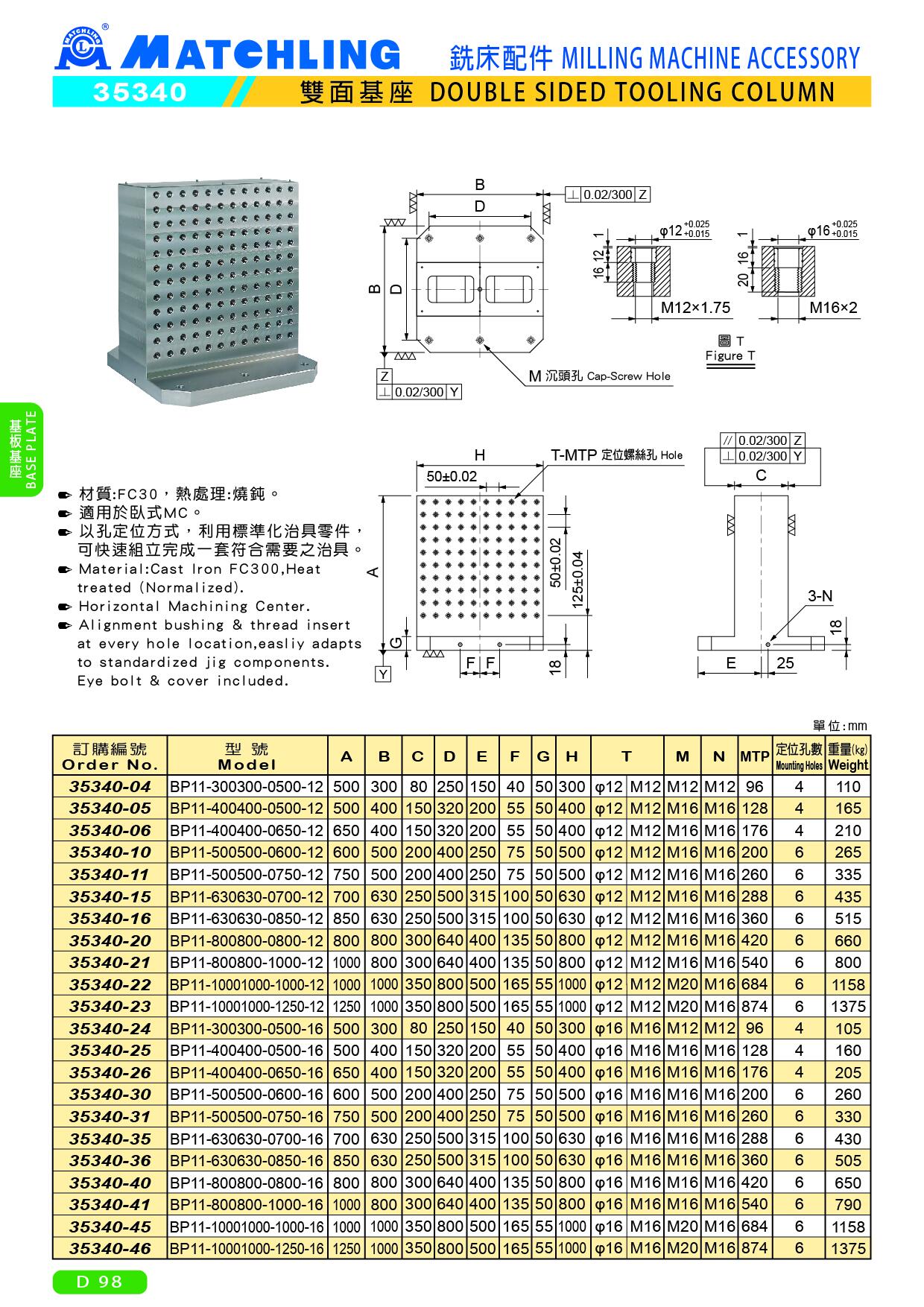 | 35340-24 | BP11-300300-0500-16 | 500 | 300 | 80 | 250 | 150 | 40 | 50 | 300 | φ16 | M16 | M12 | M12 | 96 | 4 | 105 |