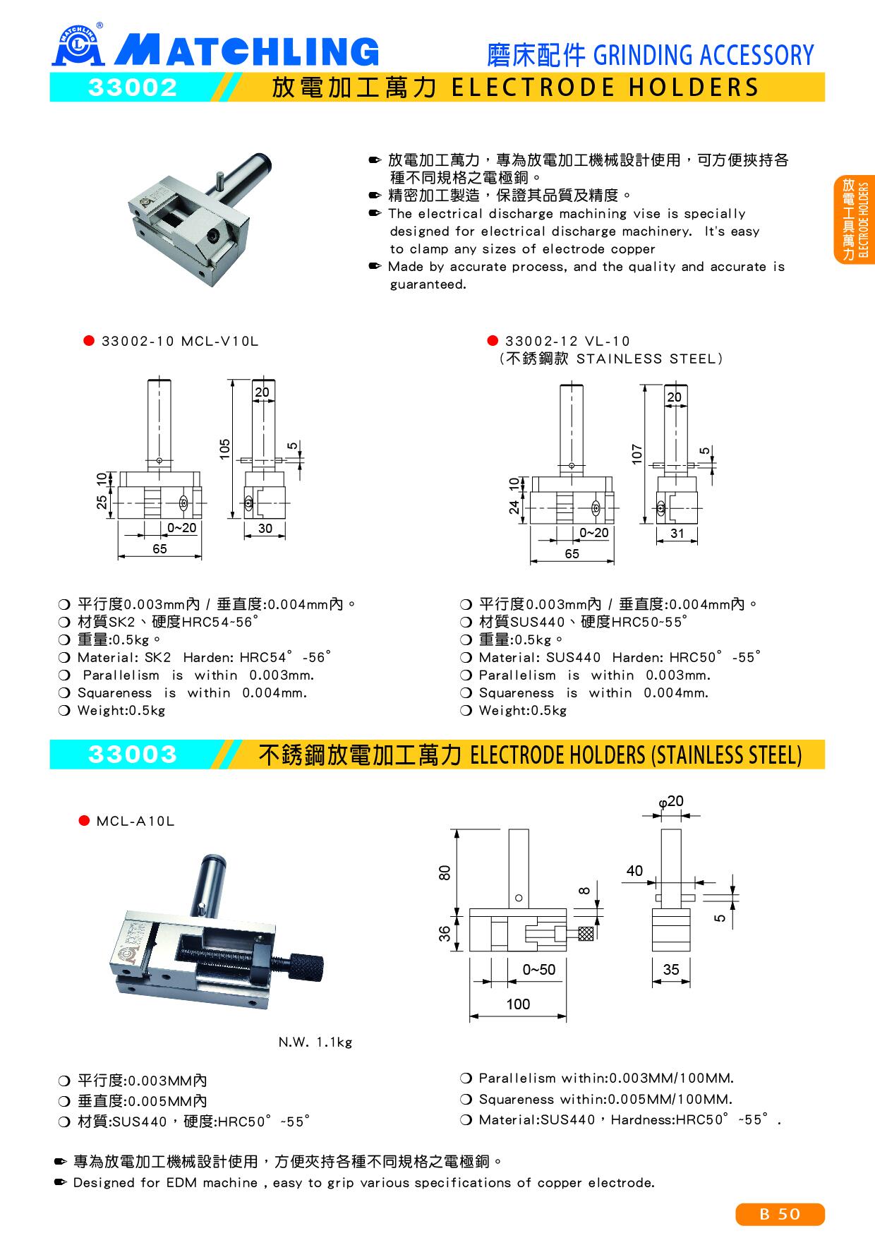 ● The electrical discharge machining vise is specially designed for electrical discharge machinery. It's easy to clamp any sizes of electrode copper