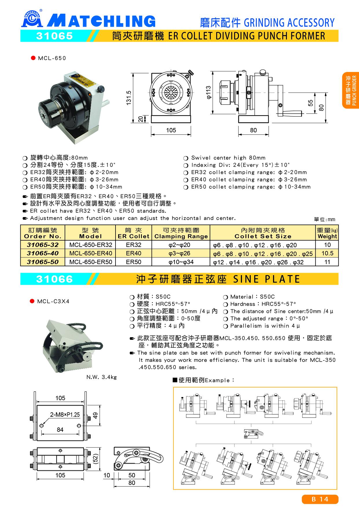 | 31065-50 | MCL-650-ER50 | φ10 ~ φ34 | φ6 φ8 φ10 φ12 φ16 φ20 φ25 | 11 |