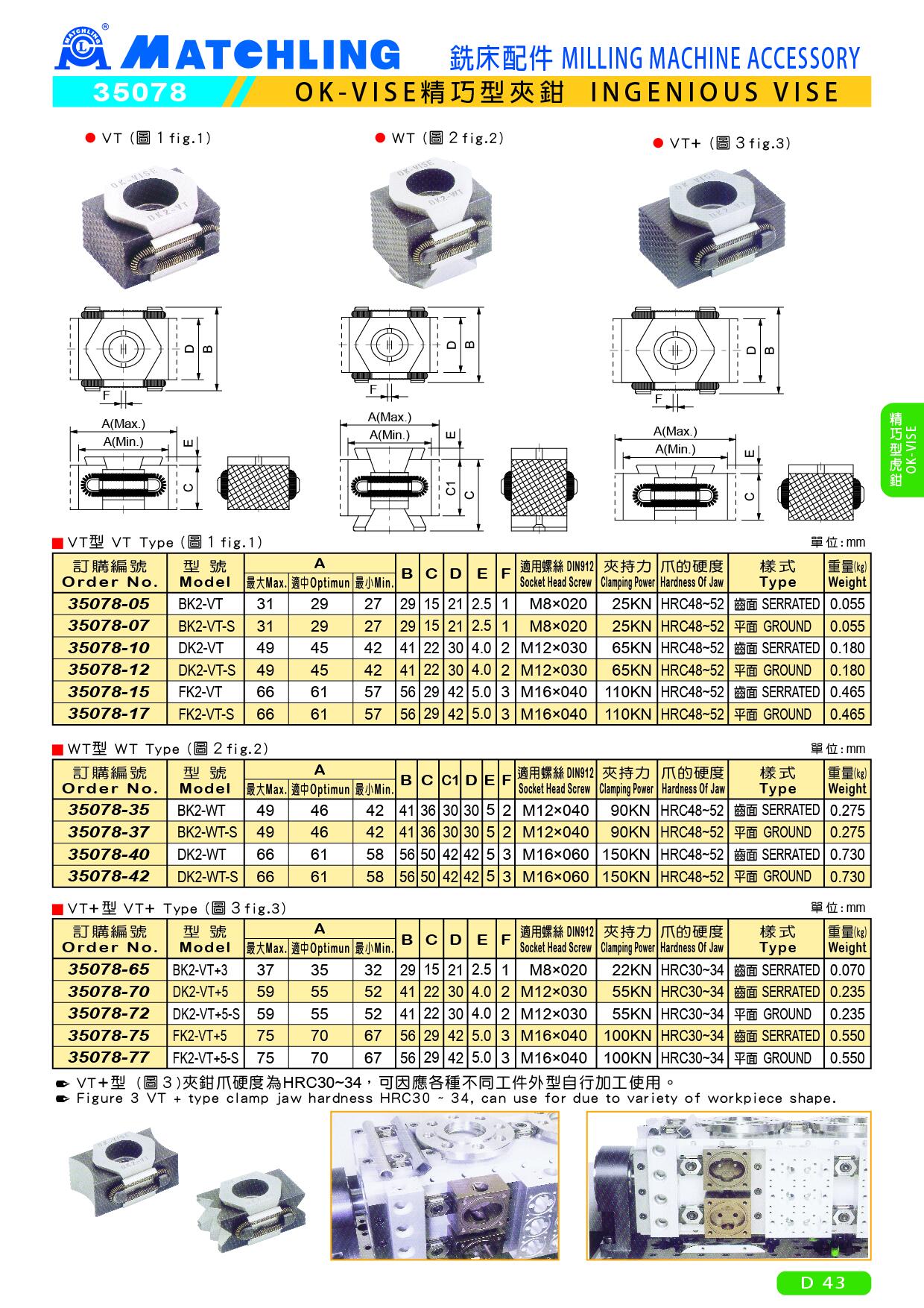| 35078-10 | DK2-VT | 49 | 45 | 42 | 41 | 22 | 30 | 4.0 | 2 | M12x030 | 65KN | HRC48~52 | 0.180 | |