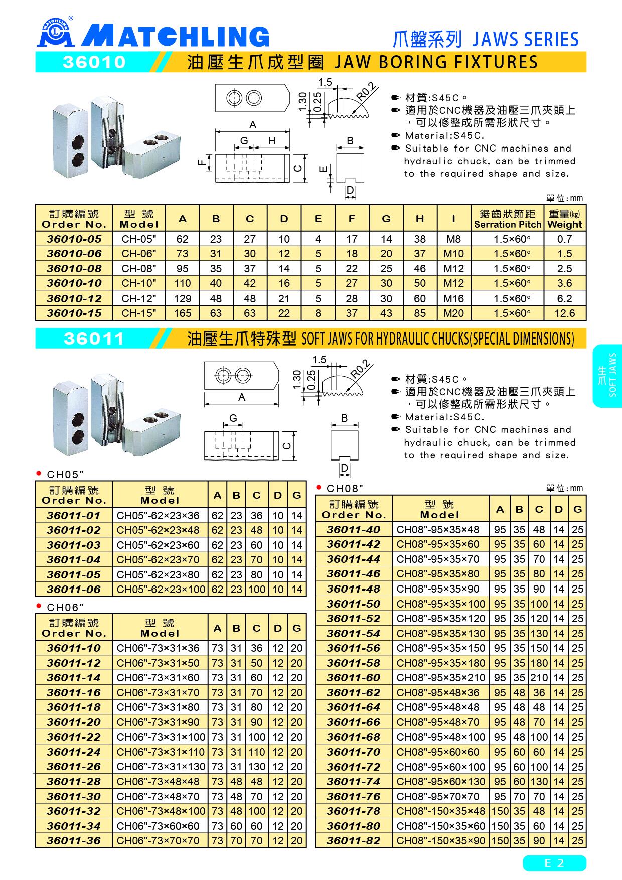 | 36011-22 | CH06"-73x3 x100 | 73 | 31 | 100 | 12 | 20 |