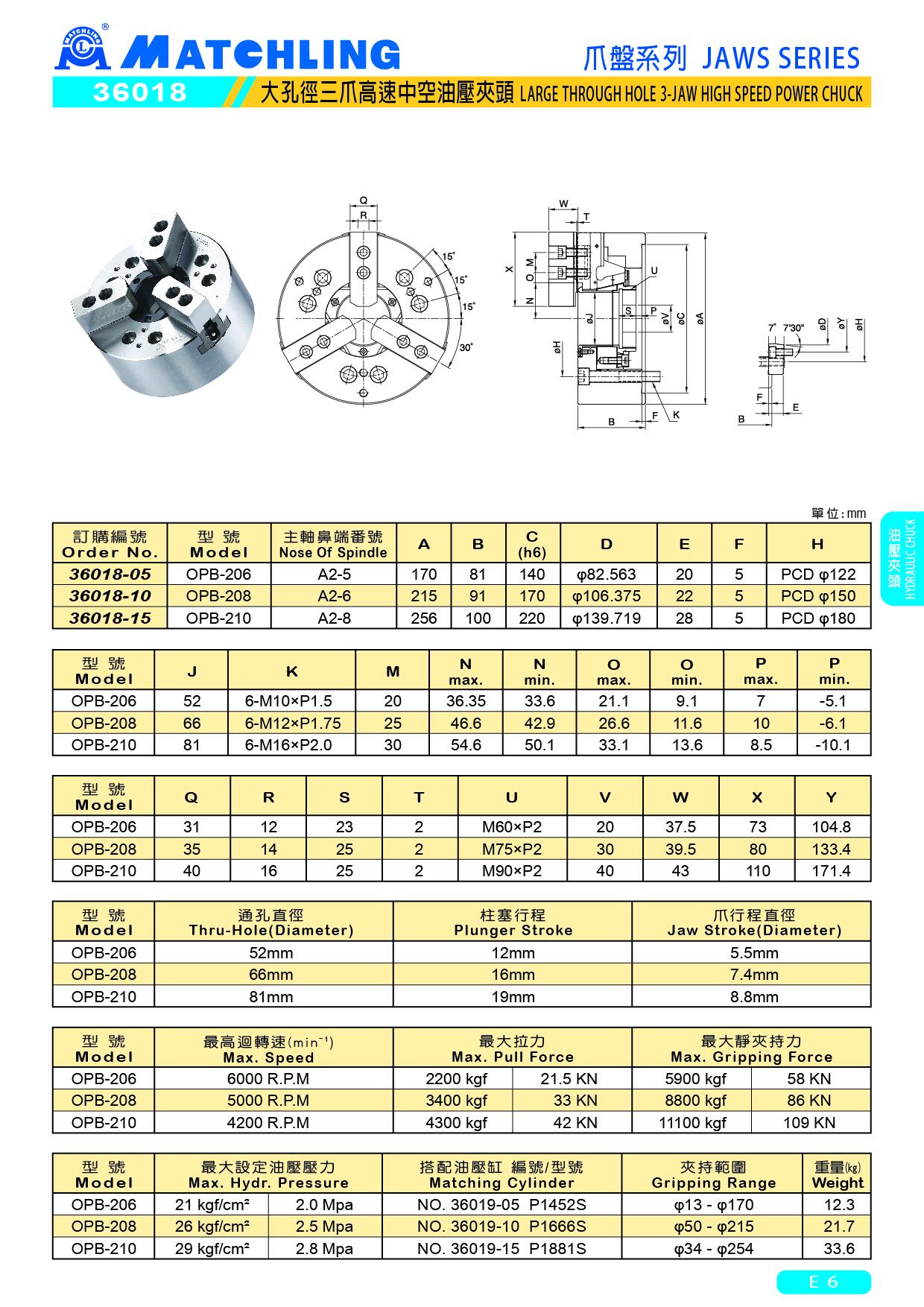 | 36018-10 | OPB-208 | A2-6 | 215 | 91 | 170 | φ106.375 | 22 | 5 | PCD φ150 |