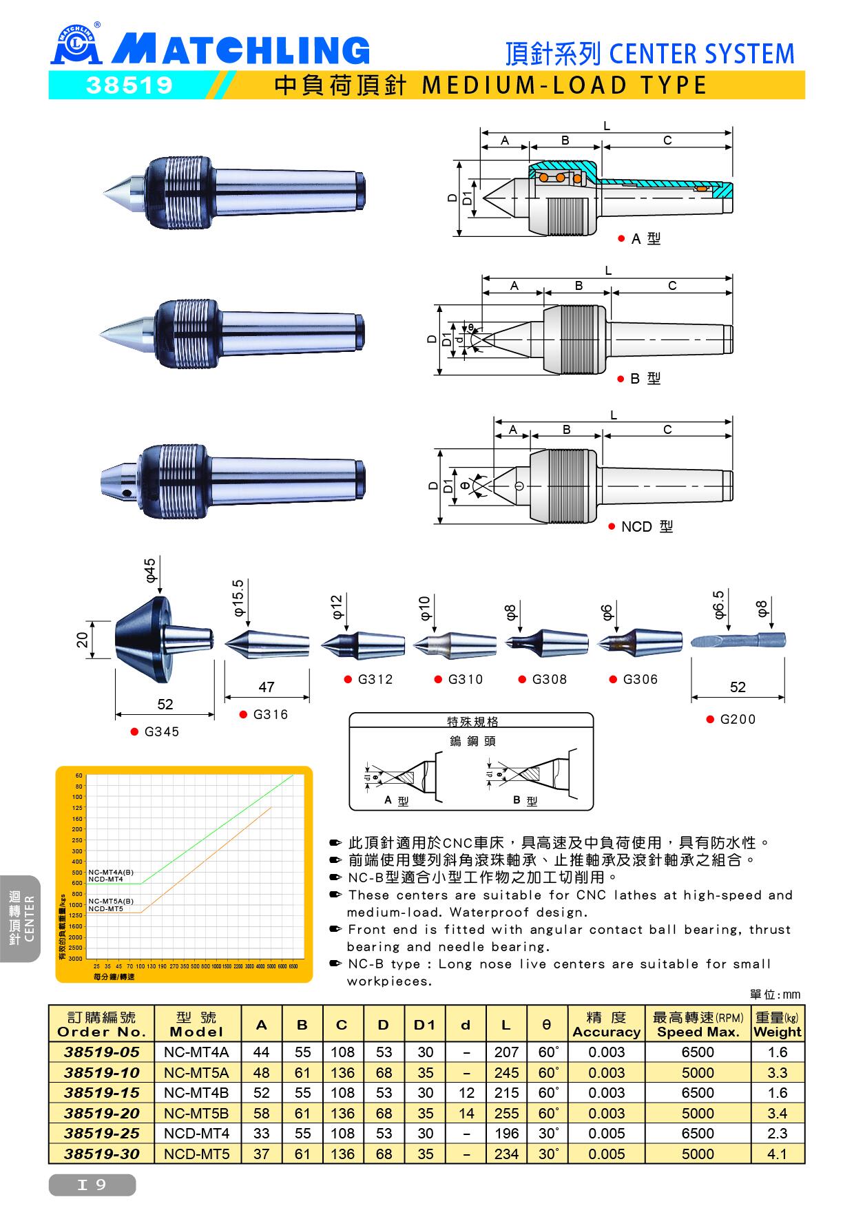 ● These centers are suitable for CNC lathes at high-speed and medium-load. Waterproof design.