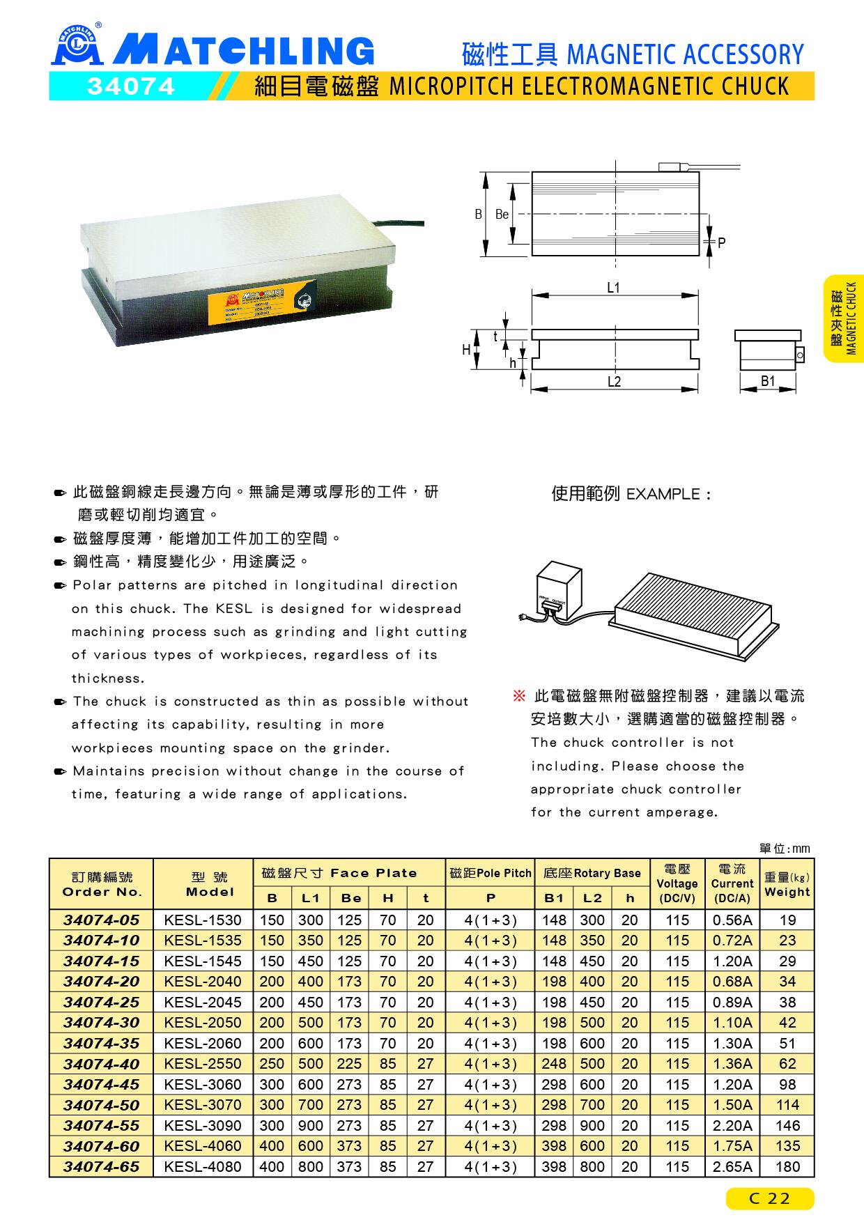 ● Polar patterns are pitched in longitudinal direction on this chuck. The KESL is designed for widespread machining process such as.