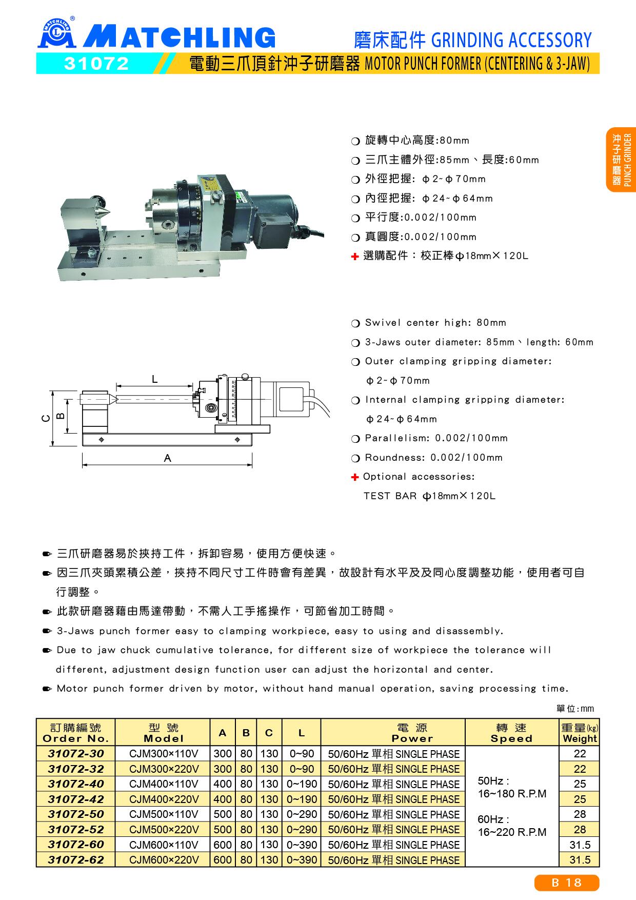 | 31072-30 | CJM300×110V | 300 | 80 | 130 | 0 ~ 90 | 50/60Hz SINGLE PHASE | 50Hz : 16~180 R.P.M 60Hz : 16~220 R.P.M | 22 |