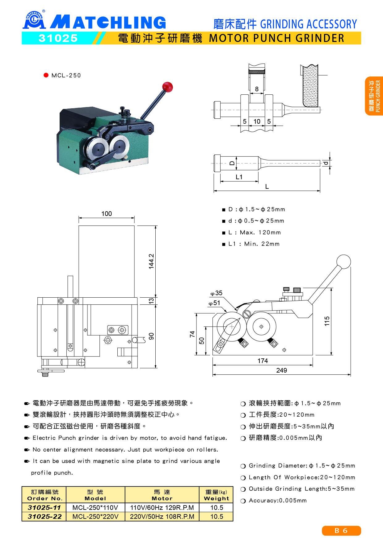 | 31025-22 | MCL-250*220V | 220V/50HZ 108R.P.M | 11kg |