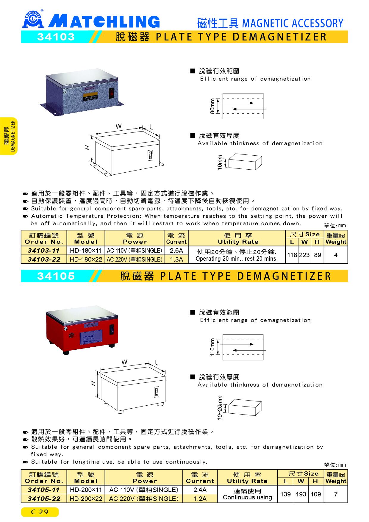 | 34103-11 | HD-180×11 | AC 110V (SINGLE) | 2.6A | Operating 20 mins., rest20 mins | 118 | 223 | 89 | 4 |