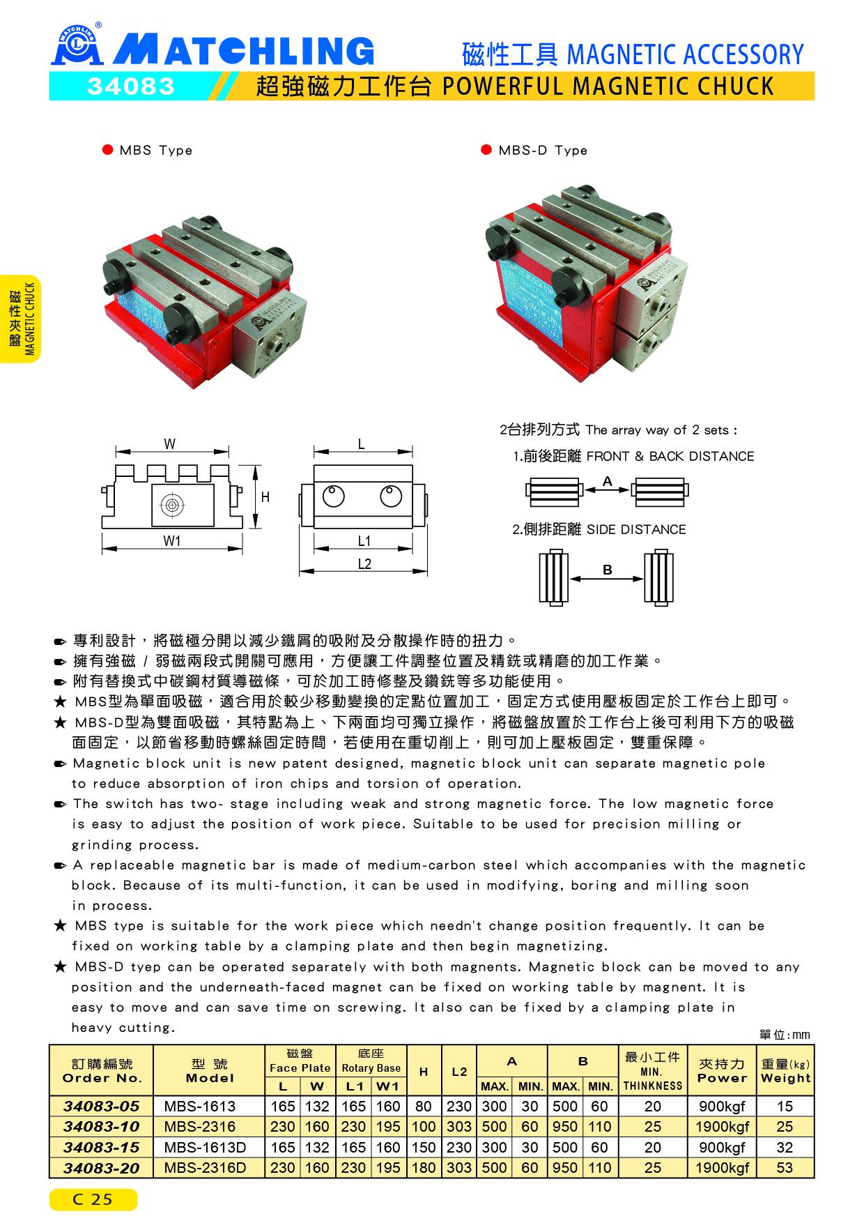 ● Magnetic block unit is new patent designed, magnetic block unit can separate magnetic pole to reduce absorption of iron chips and torsion of operation.