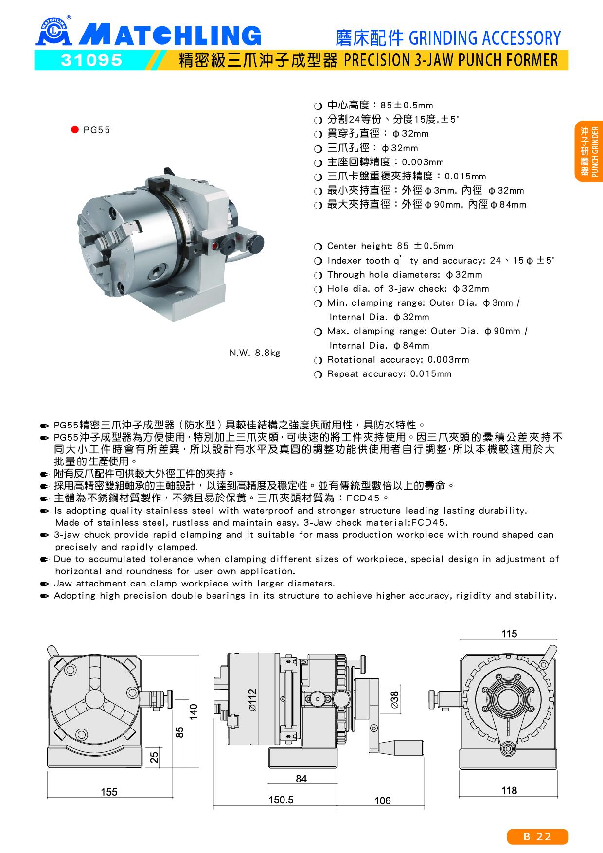 ● 3-jaw chuck provide rapid clamping and it suitable for mass production workpiece with round shaped can precisely and rapidly clamped.