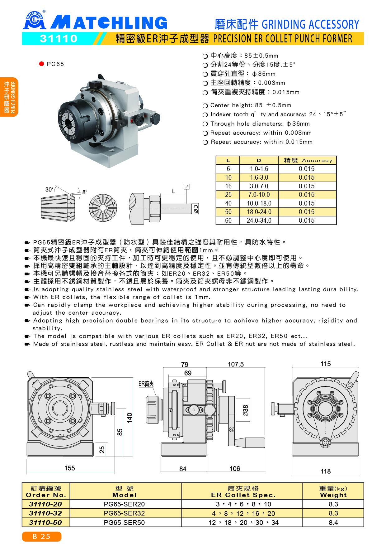 ● The model is compatible with various ER collets such as ER20, ER32, ER50 ect...