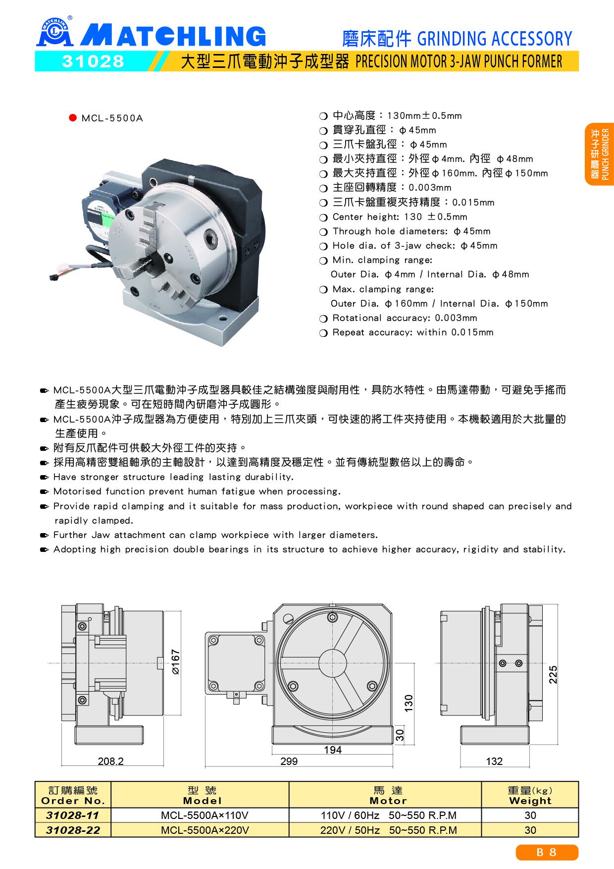 | 31028-22 | MCL-5500A×220V | 220V / 50Hz 50~550 R.P.M | 30 |