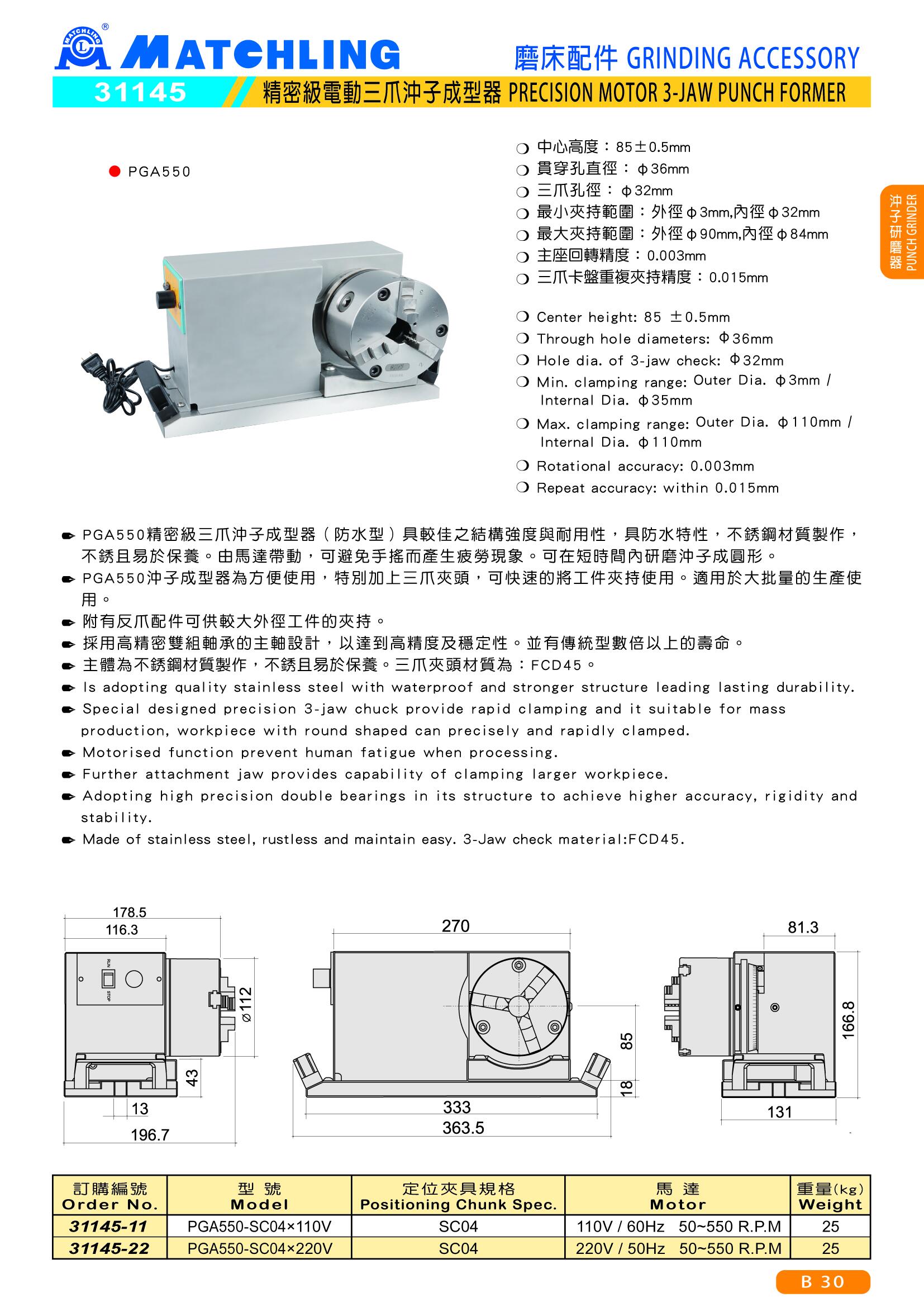 | 31145-22 | PGA550-SC04x220V | SC04 | 220V / 50Hz 50-550 R.P.M | 25 |