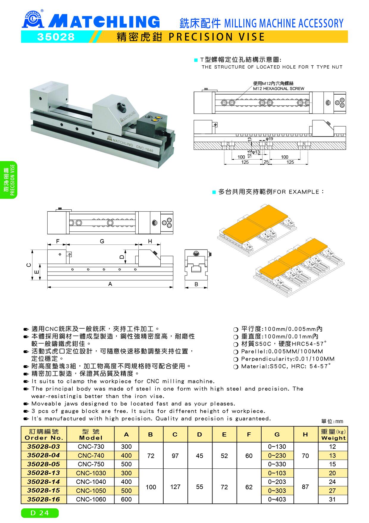 | 35028-13 | CNC-1030 | 300 | 100 | 127 | 55 | 72 | 62 | 0~103 | 87 | 20 |