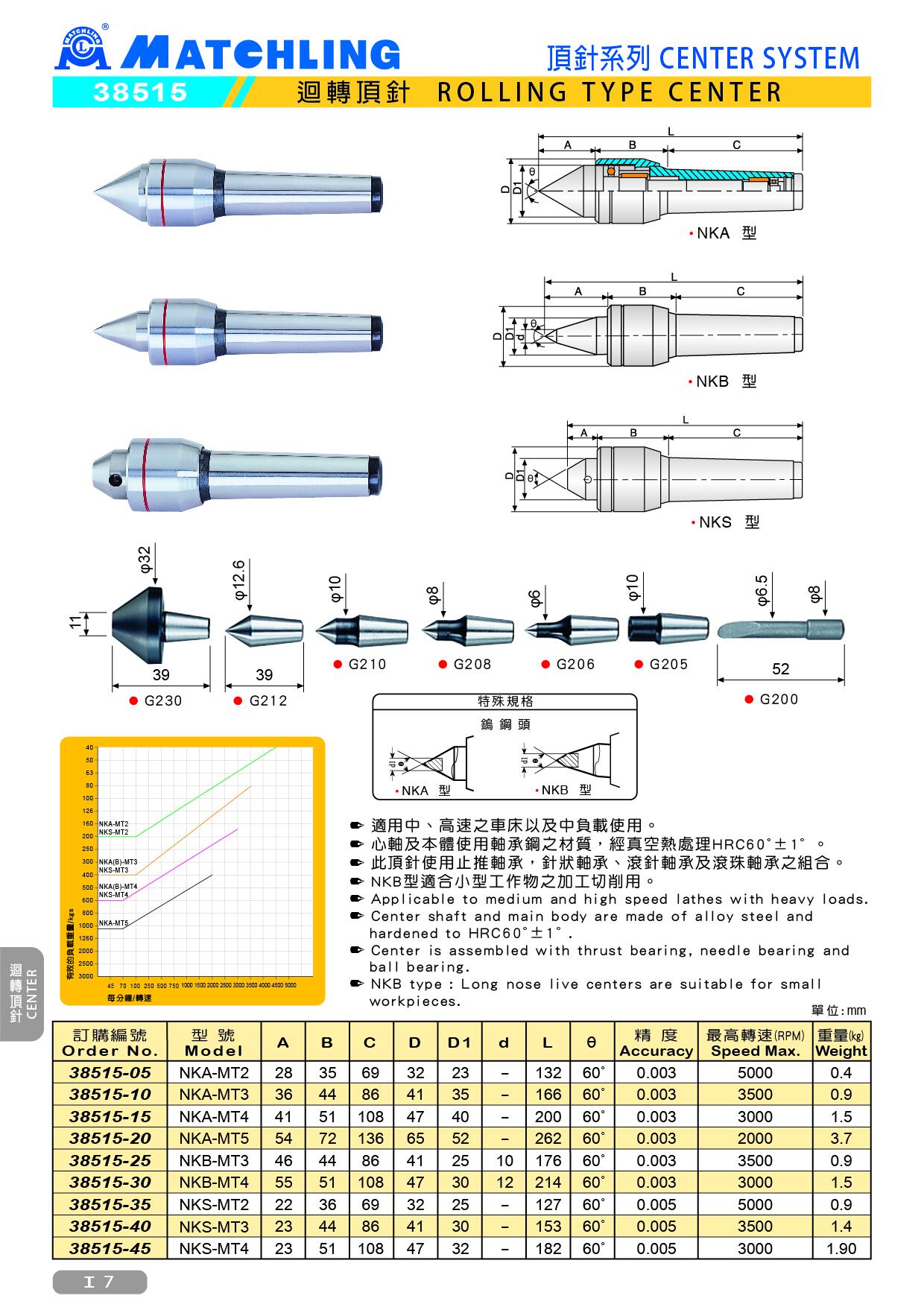 ● NKB type : Long nose live centers are suitable for small workpieces.