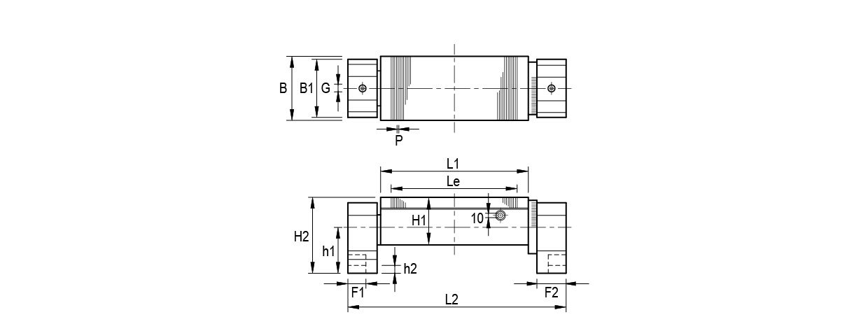 | B | L1 | Le | H1 | P | B1 | F1 | F2 | G | hi | h2 | L2 | H2 | |||