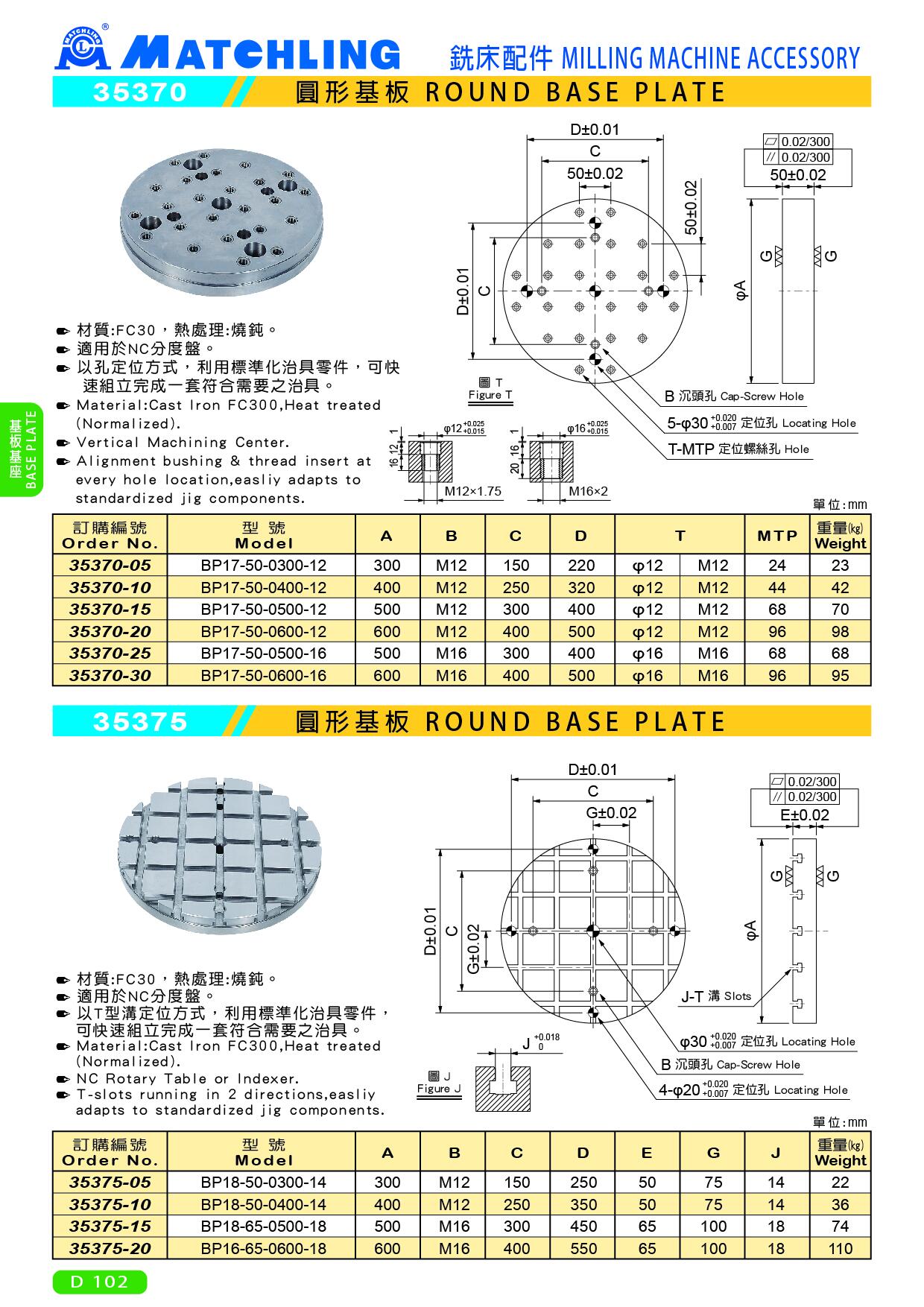 | Order No. | Model | A | B | C | D | G | MTP | Weight (kg) | |