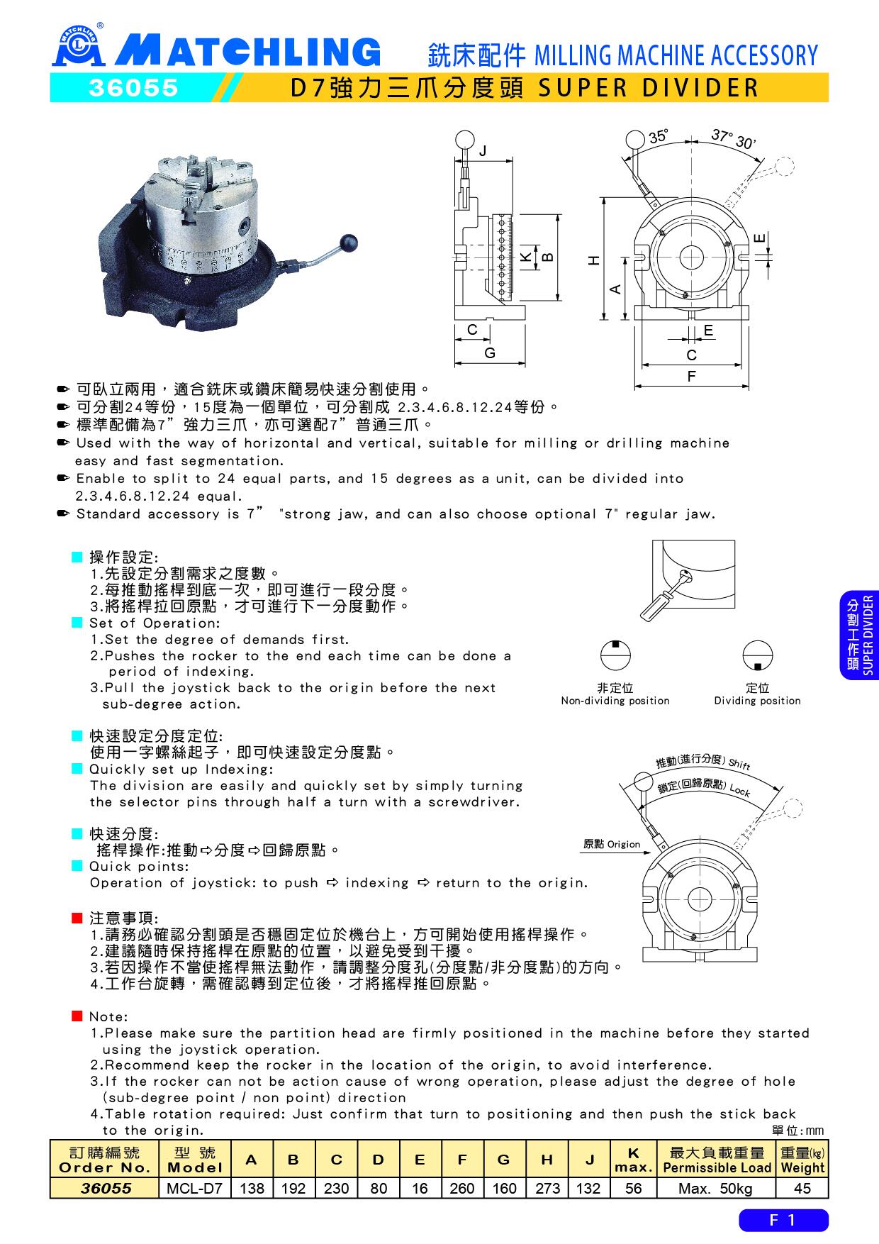 ● Used with the way of horizontal and vertical, suitable for milling or drilling machine easy and fast segmentation.